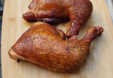Amazingly juicy leg and thigh, smoked perfection.